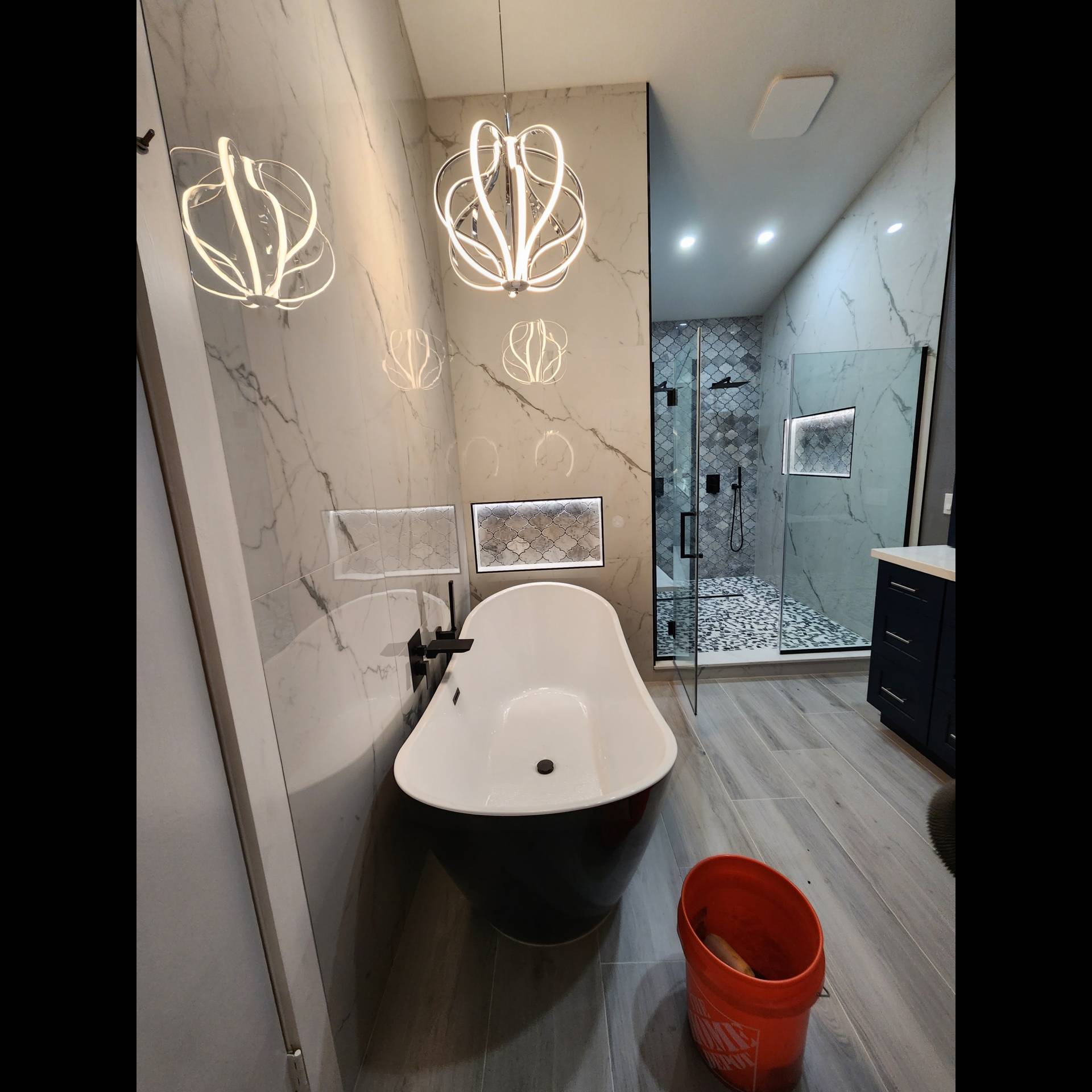 Enhance your home with a jetted garden tub or a spacious glass shower for added beauty and indulgence. Transform a dim powder room into a charming jewel box for guests with brighter lighting and updated plumbing fixtures. We install tubs, showers, tile, flooring, sinks, and more.